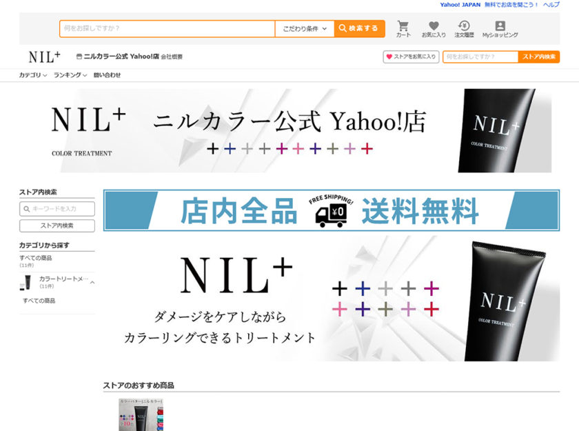 カラートリートメント「NilColor(ニルカラー)」のYahoo!ショッピングの構築を行いました。看板・メイン大バナーは設置作業のみ対応。